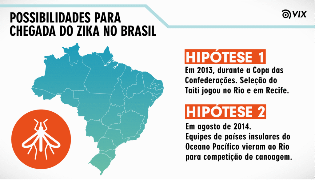 A médica sanitarista Ana Freitas Ribeiro, do Instituto de Infectologia Emílio Ribas, explica que uma das hipóteses é que o vírus tenha chegado por aqui durante a Copa das Confederações, evento de futebol que contou com a participação da seleção do Taiti, a maior ilha da Polinésia Francesa, em jogos no Rio de Janeiro e no Recife.